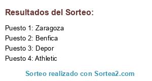 Lista de participantes: Zaragoza, Benfica, Depor, Athletic.