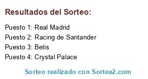 Lista de participantes: Crystal Palace, Betis, Racing de Santander, Real Madrid.