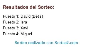 Lista de participantes: Xavi, David (Betis), Isra, Miguel.