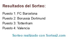 Lista de participantes: FC Barcelona, Borussia Dortmund, Valencia, Tottenham.