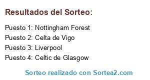 Lista de participantes: Nottingham Forest, Liverpool, Celta de Vigo, Celtic de Glasgow.