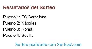 Lista de participantes: FC Barcelona, Nápoles, Roma, Sevilla.