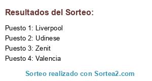 Lista de participantes: Liverpool, Valencia, Udinese, Zenit.