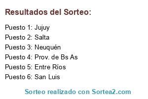 Lista de participantes: San Luis, Entre Ríos, Jujuy, Prov. de Bs As, Neuquén, Salta.