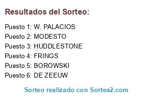 Lista de participantes: FRINGS, BOROWSKI, HUDDLESTONE, MODESTO, DE ZEEUW, W. PALACIOS.