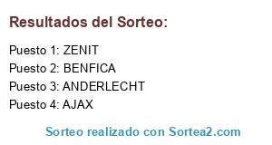Lista de participantes: AJAX, ZENIT, BENFICA, ANDERLECHT.