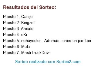 Lista de participantes: Canijo, Ancalo, Mula, oKi, nohaycolor - Además tienes un pie fuera., MnstrTruckDrivr, Kingzell.