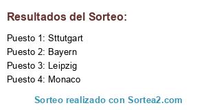 Lista de participantes: Sttutgart, Monaco, Leipzig, Bayern.