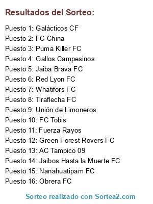 Lista de participantes: Gallos Campesinos, Tiraflecha FC, Jaiba Brava FC, Unión de Limoneros, Obrera FC, Puma Killer FC, Fuerza Rayos, Red Lyon FC, AC Tampico 09, Whatifors FC, FC Tobis, Galácticos CF, Jaibos Hasta la Muerte FC, Nanahuatipam FC, Green Forest Rovers FC, FC China.