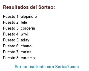 Lista de participantes: carmelo, wiwi, carlos, chano, corderin, alejandro, aday, fele.
