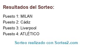 Lista de participantes: Liverpool, Cádiz, ATLÉTICO, MILAN.