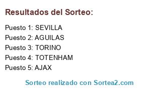 Lista de participantes: SEVILLA, AJAX, TORINO, AGUILAS, TOTENHAM.