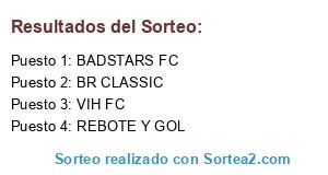 Lista de participantes: BR CLASSIC, BADSTARS FC, VIH FC, REBOTE Y GOL.