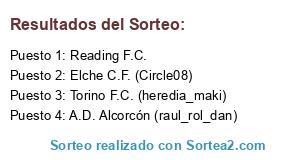 Lista de participantes: Elche C.F. (Circle08), A.D. Alcorcón (raul_rol_dan), Reading F.C., Torino F.C. (heredia_maki).