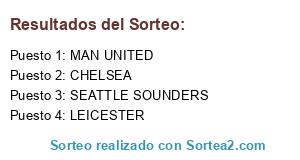 Lista de participantes: MAN UNITED, LEICESTER, SEATTLE SOUNDERS, CHELSEA.