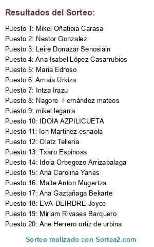 - Puesto 14: Idoia Orbegozo Arrizabalaga