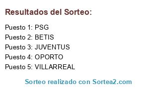 Lista de participantes: VILLARREAL, BETIS, OPORTO, PSG, JUVENTUS.