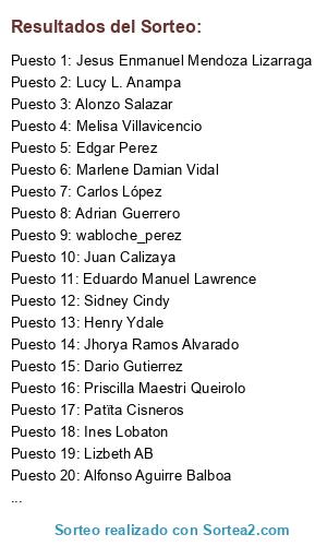 Lista de participantes: Ines Lobaton , Nicole Alvarado , Marlene Damian Vidal , Mari Huamaní , Rosalina Puicon Cen , Luis Enrique Yanac Jimenez , Carlos López , Ursula Ydelia Honores Lavado , Lucy L. Anampa , Pilar Flores , Lizbeth AB , Sidney Cindy , Jesus Enmanuel Mendoza Lizarraga , Dario Gutierrez , Edgar Perez , Javi BjjPerú PommaVillafuerrte , Juan Calizaya , Alfonso Aguirre Balboa , Alonzo Salazar , Adrian Guerrero , Andres Gleiser Tealdo , Jackeline Bernales , Jhorya Ramos Alvarado , Erick Rissel , Priscilla Maestri Queirolo , wabloche_perez , Patricia Lock , Romi Soledad , Melisa Villavicencio , Henry Ydale , Ivellise , Eduardo Manuel Lawrence , Patïta Cisneros.