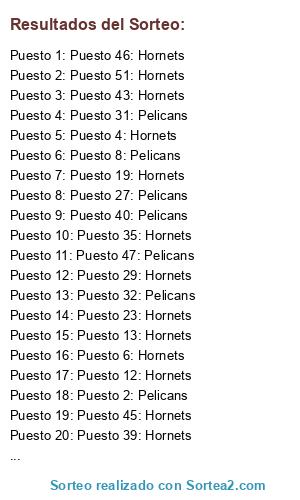 Resultados del sorteo: