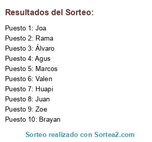 Resultados del sorteo: