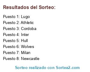 Lista de participantes: Cordoba, Athletic, Milan, Wolves, Hull, Newcastle, Inter, Lugo.
