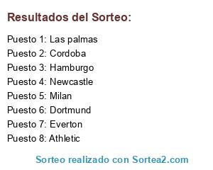 Lista de participantes: Milan, Hamburgo, Dortmund, Las palmas, Newcastle, Athletic, Cordoba, Everton.