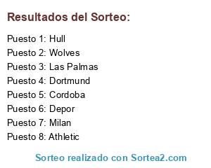 Lista de participantes: Cordoba, Athletic, Milan, Wolves, Dortmund, Hull, Las Palmas, Depor.