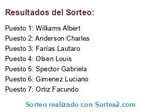 Lista de participantes: Gimenez Luciano, Farías Lautaro, Spector Gabriela, Williams Albert, Ortiz Facundo, Anderson Charles, Olsen Louis.