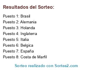 Lista de participantes: Alemania, Inglaterra, España, Italia, Brasil, Belgica, Costa de Marfil, Holanda.
