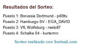 Lista de participantes: VfL Wolfsburg - reelo87, Hamburgo SV - EGA_DAVID, Schalke 04 - kurtermn, Borussia Dortmund - pi69tu.