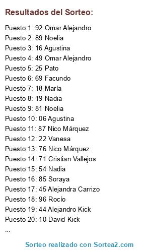 Resultados del sorteo: