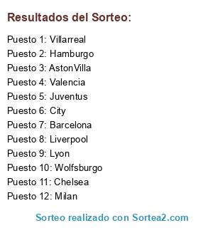 Lista de participantes: City, Milan, Chelsea, Villarreal, Valencia, Lyon, Juventus, Hamburgo, Wolfsburgo, Barcelona, AstonVilla, Liverpool.