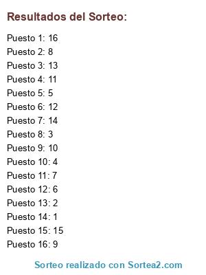 Resultados del sorteo: