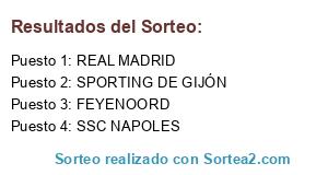 Lista de participantes: REAL MADRID, SPORTING DE GIJÓN, SSC NAPOLES, FEYENOORD.