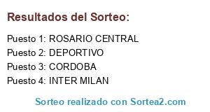 Lista de participantes: DEPORTIVO, INTER MILAN, ROSARIO CENTRAL, CORDOBA.