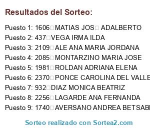 Resultados del sorteo: