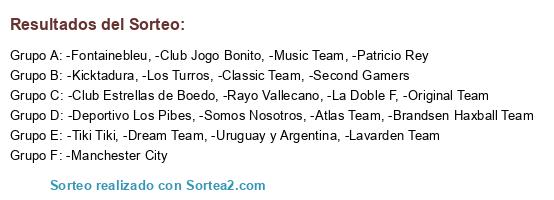 Lista de participantes: -Deportivo Los Pibes, -Kicktadura, -Tiki Tiki, -Fontainebleu, -La Doble F, -Atlas Team, -Patricio Rey, -Original Team, -Dream Team, -Classic Team, -Rayo Vallecano, -Second Gamers, -Uruguay y Argentina, -Music Team, -Somos Nosotros, -Los Turros, -Club Jogo Bonito, -Club Estrellas de Boedo, -Manchester City, -Lavarden Team, -Brandsen Haxball Team.