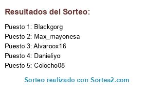 Lista de participantes: Blackgorg, Alvaroox16, Colocho08, Danieliyo, Max_mayonesa.