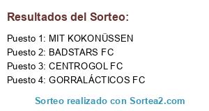 Lista de participantes: BADSTARS FC, CENTROGOL FC, GORRALÁCTICOS FC, MIT KOKONÜSSEN.