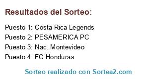 Lista de participantes: Costa Rica Legends, PESAMERICA PC, FC Honduras, Nac. Montevideo.