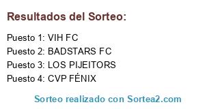 Lista de participantes: LOS PIJEITORS, BADSTARS FC, VIH FC, CVP FÉNIX.