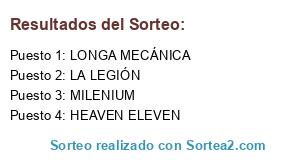 Lista de participantes: MILENIUM, HEAVEN ELEVEN, LONGA MECÁNICA, LA LEGIÓN.