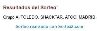 Lista de participantes: TOLEDO DE TABASCOS, ATCO. MADRID DE CELORIOS, BETIS DE LORENBETICO, SHACKTAR DE JJCRACK.