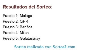 Lista de participantes: Benfica, Galatasaray, Malaga, Milan, QPR.