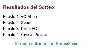 Lista de participantes: Spurs, AC Milan, Porto FC, Crystal Palace.