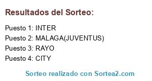 Lista de participantes: RAYO, MALAGA(JUVENTUS), INTER, CITY.