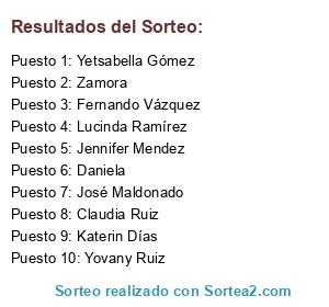 Lista de participantes: Lucinda Ramírez, Katerin Días, Jennifer Mendez, Fernando Vázquez, José Maldonado, Daniela, Zamora, Yovany Ruiz, Claudia Ruiz, Yetsabella Gómez.