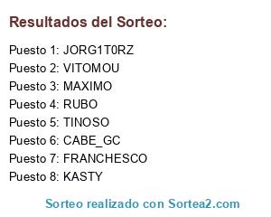 Lista de participantes: RUBO, TINOSO, JORG1T0RZ, VITOMOU, FRANCHESCO, CABE_GC, MAXIMO, KASTY.