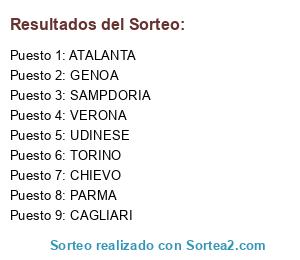 Lista de participantes: CAGLIARI, UDINESE, ATALANTA, CHIEVO, GENOA, PARMA, SAMPDORIA, TORINO, VERONA.
