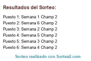 Lista de participantes: Semana 1 Champ 2, Semana 2 Champ 2, Semana 3 Champ 2, Semana 4 Champ 2, Semana 5 Champ 2, Semana 6 Champ 2.